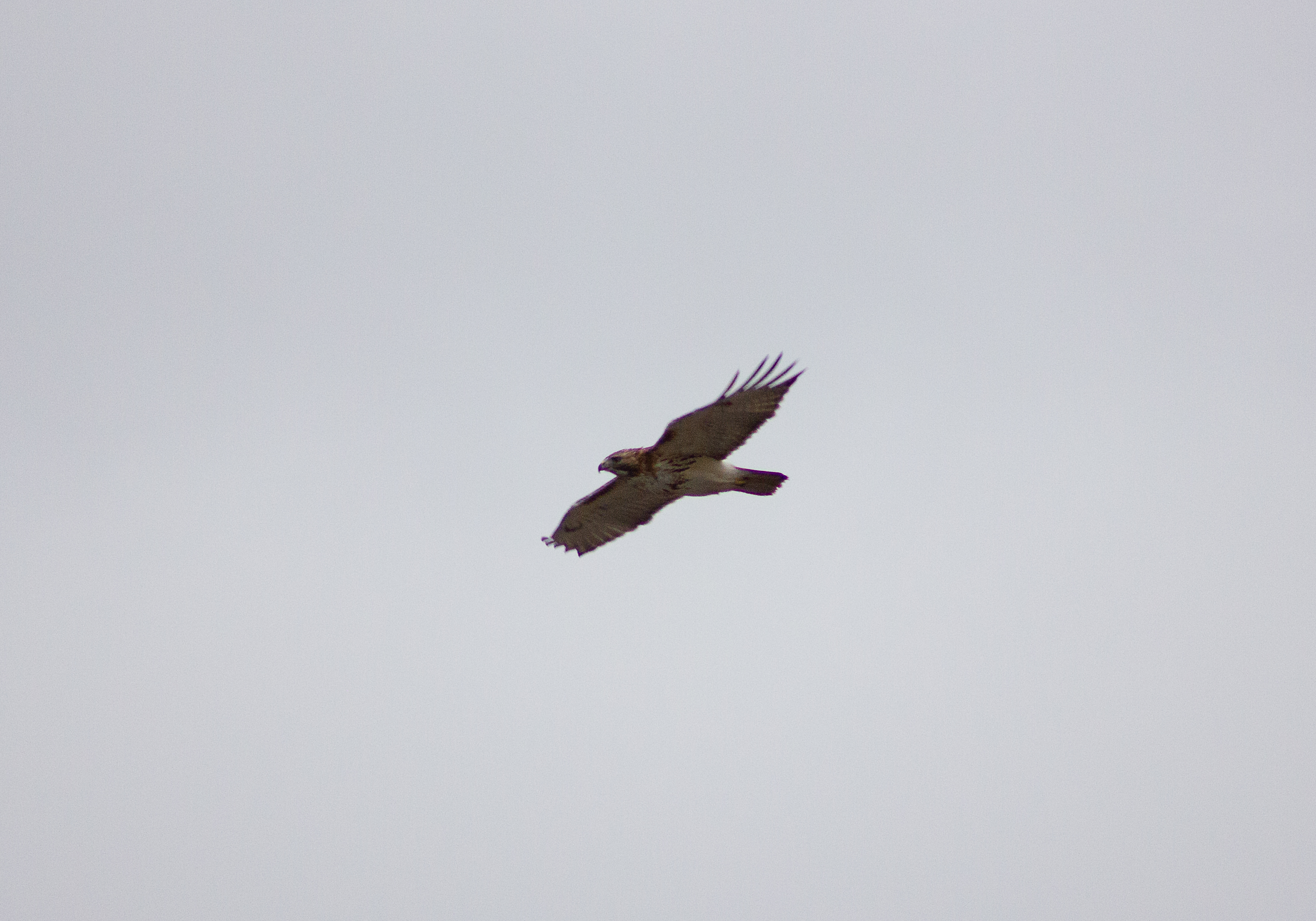 Size: Adults typically range from 17 to 25 inches (45-65 cm) in length with a wingspan of 3.5 to 4.8 feet (110-140 cm).Weight: Between 1.5 to 3.5 pounds (700-1600 grams), with females being larger than males. Coloration: While there is some regional variation, most red-tailed hawks have: A reddish-brown tail, which gives the species its name. A dark brown back and a lighter, whitish underbelly with a characteristic dark band across the belly. Dark upper wings and lighter underwings, often with a dark “patagial” mark along the leading edge of the wing.