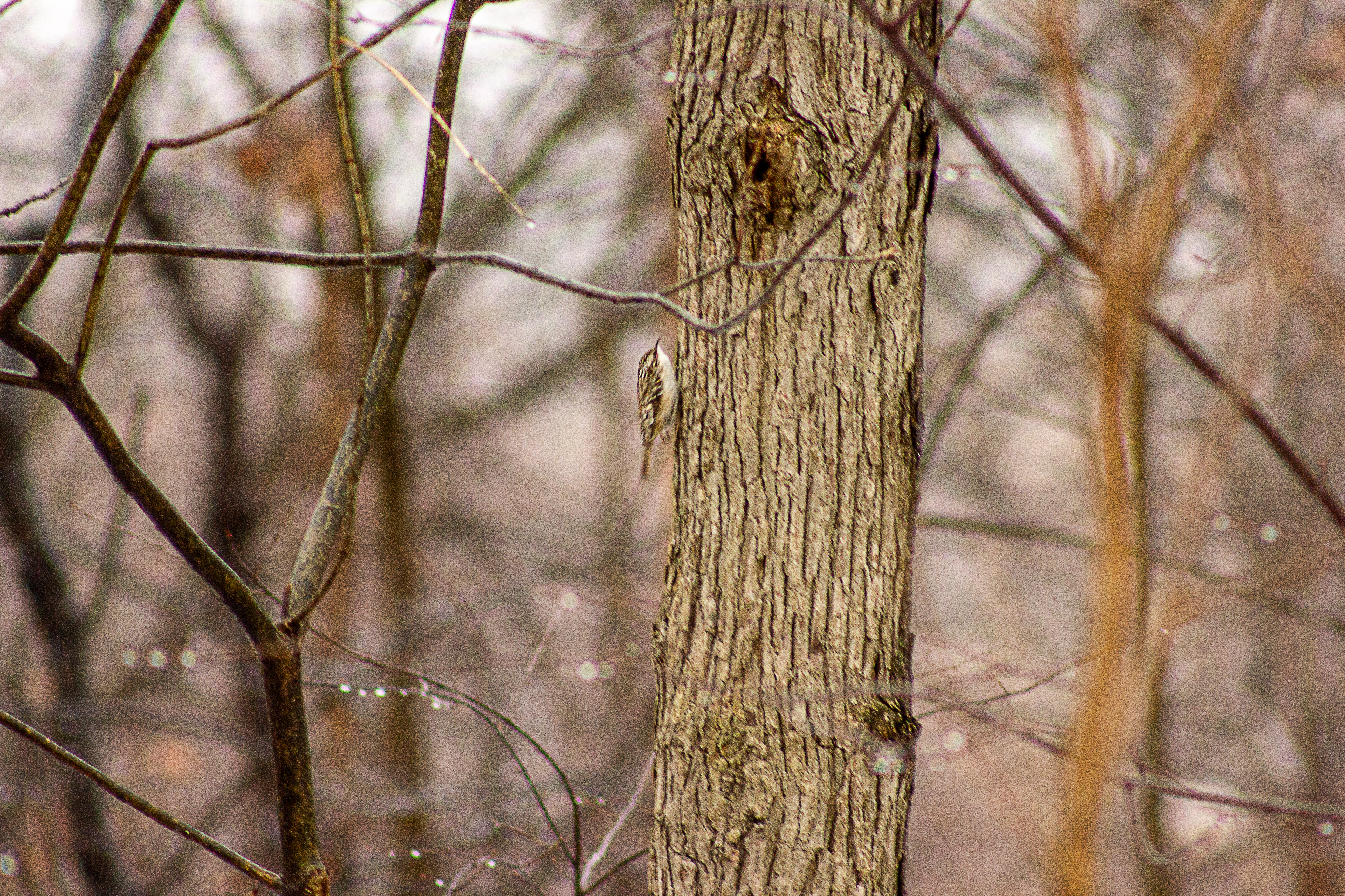 Brown creepers are the only species of treecreeper found in North America. Their camouflage is so effective that they can be difficult to spot, even when climbing right in front of an observer. Unlike nuthatches, which move headfirst down trees, brown creepers only move upward in a spiraling motion. They often roost in tree bark crevices during cold nights, huddling together for warmth. Brown creepers have an extra-long hind toe with a sharp claw, which helps them cling to rough bark.