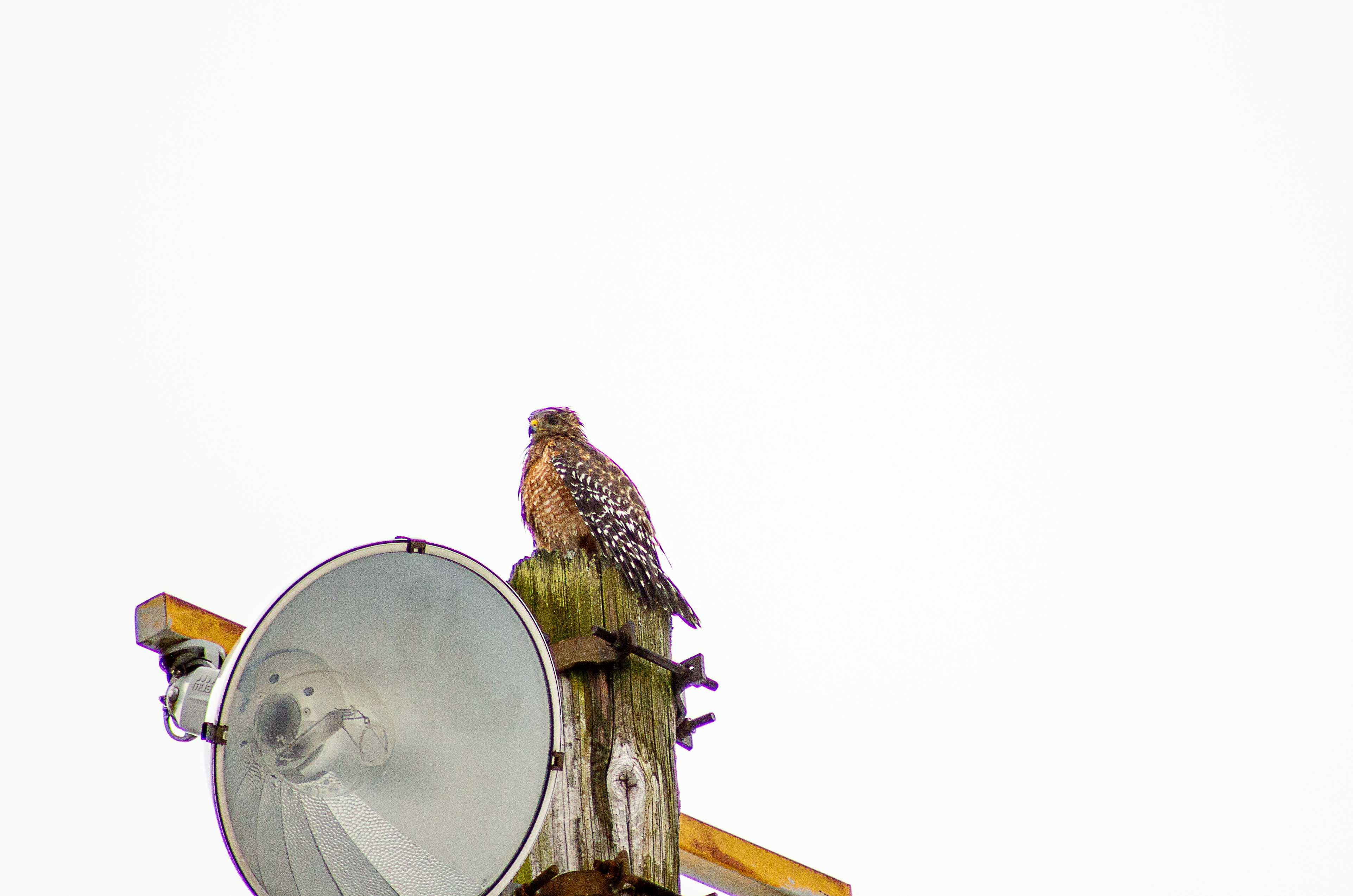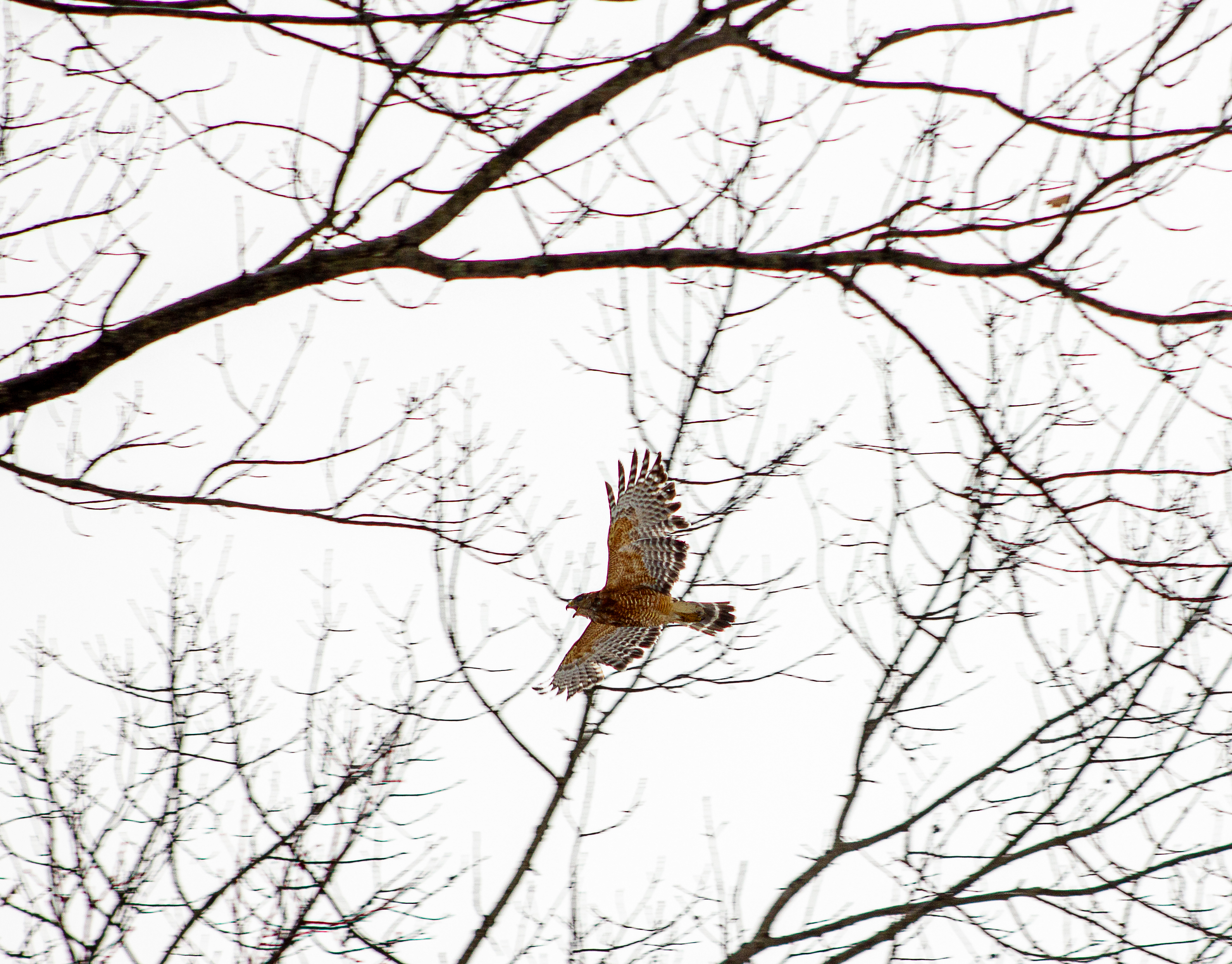 The red-shouldered hawk (Buteo lineatus) is a medium-sized bird of prey native to North America. It belongs to the Buteo genus, which includes broad-winged hawks characterized by rounded wings and relatively short tails. This hawk is known for its striking plumage, distinctive call, and preference for wooded habitats.