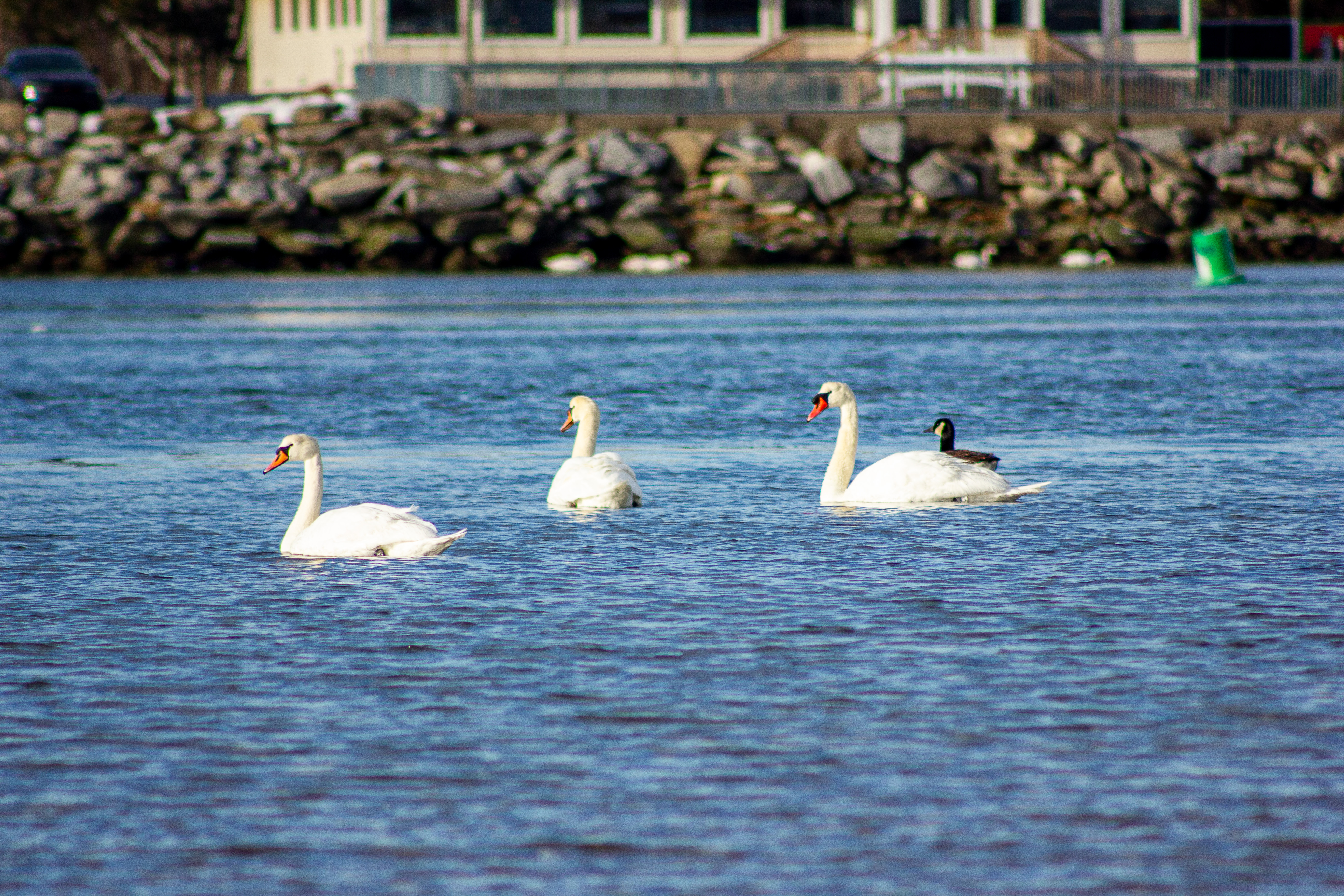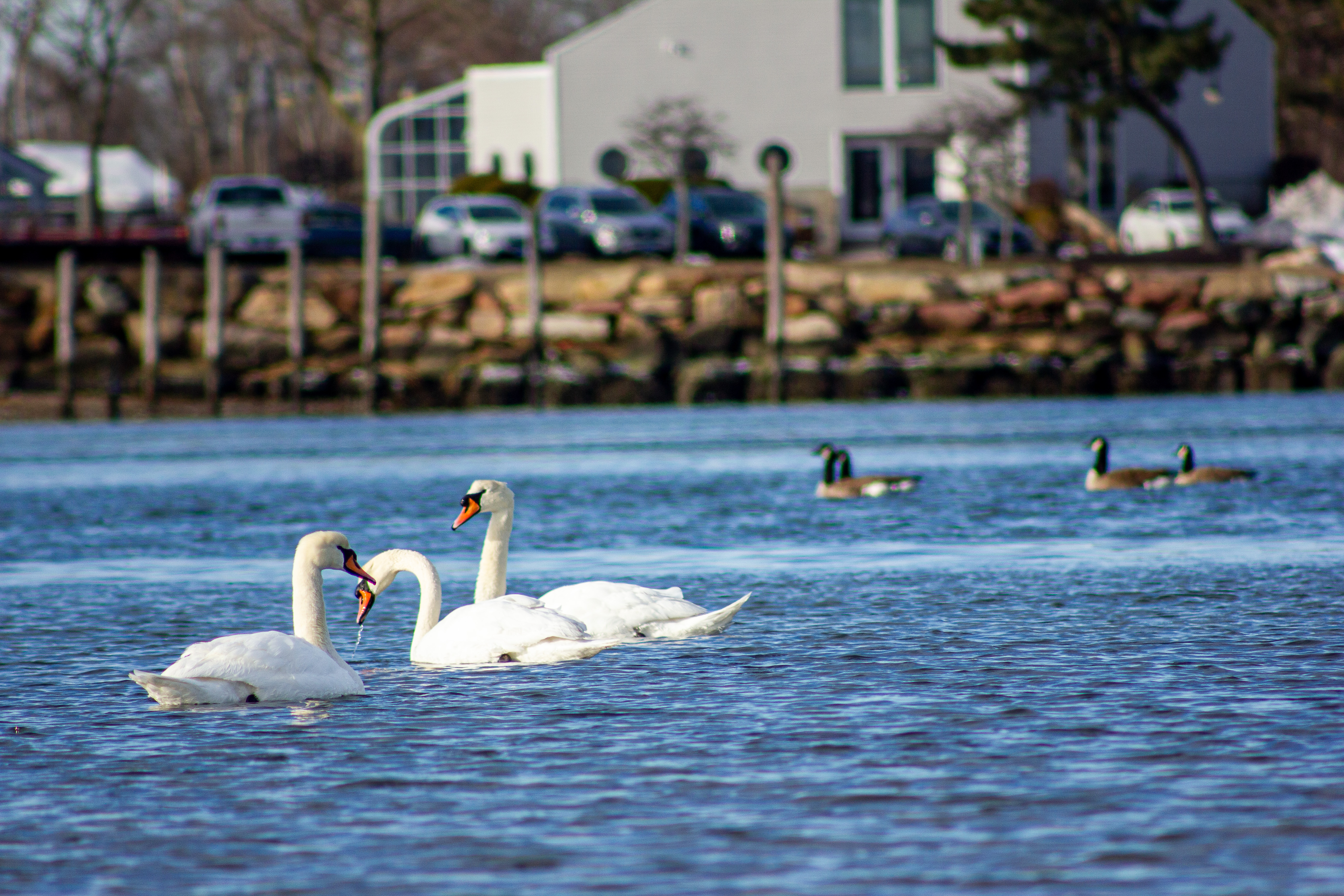 Mating: Mute swans form monogamous pairs, often staying together for life. Courtship includes synchronized swimming and head-dipping displays.