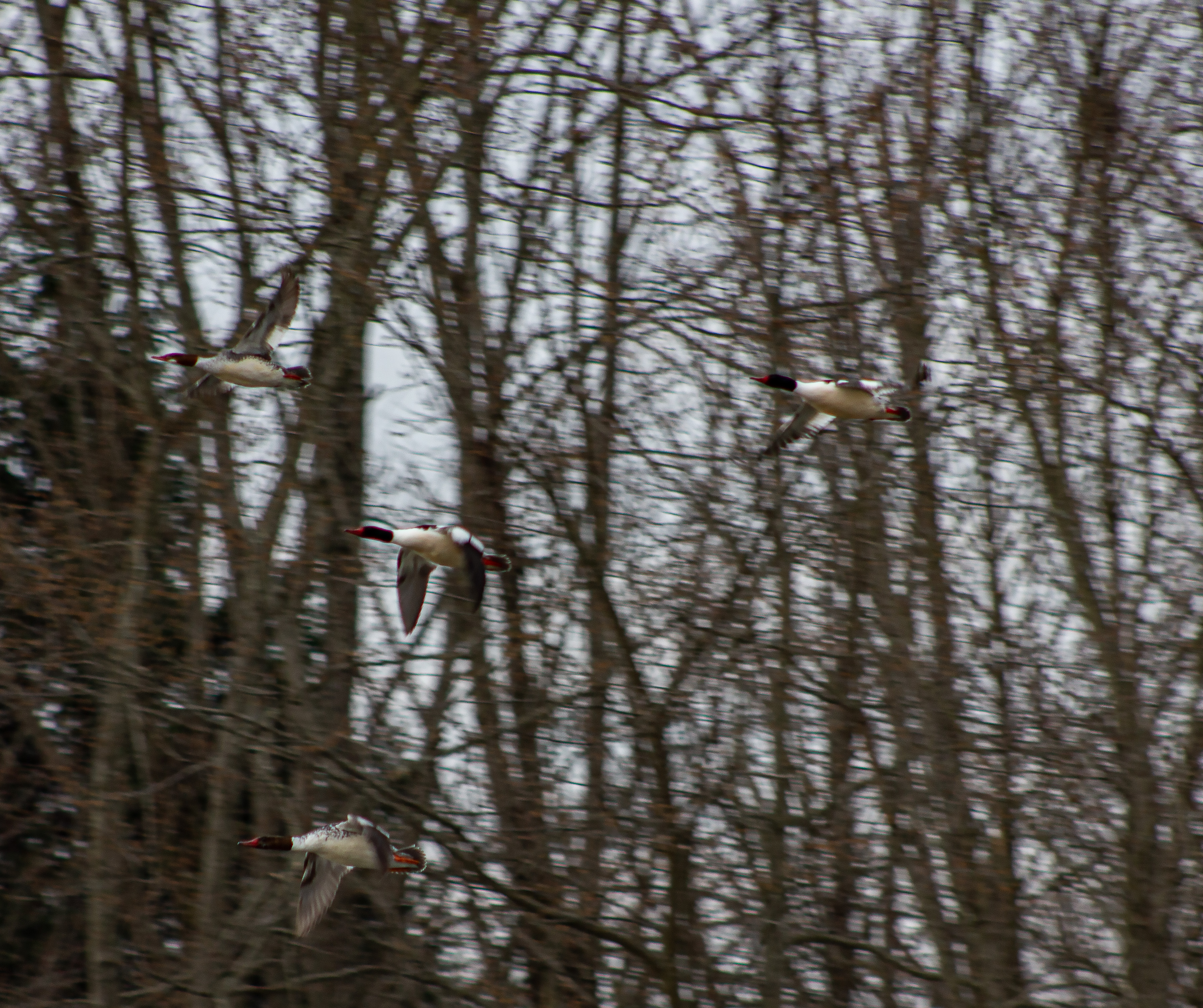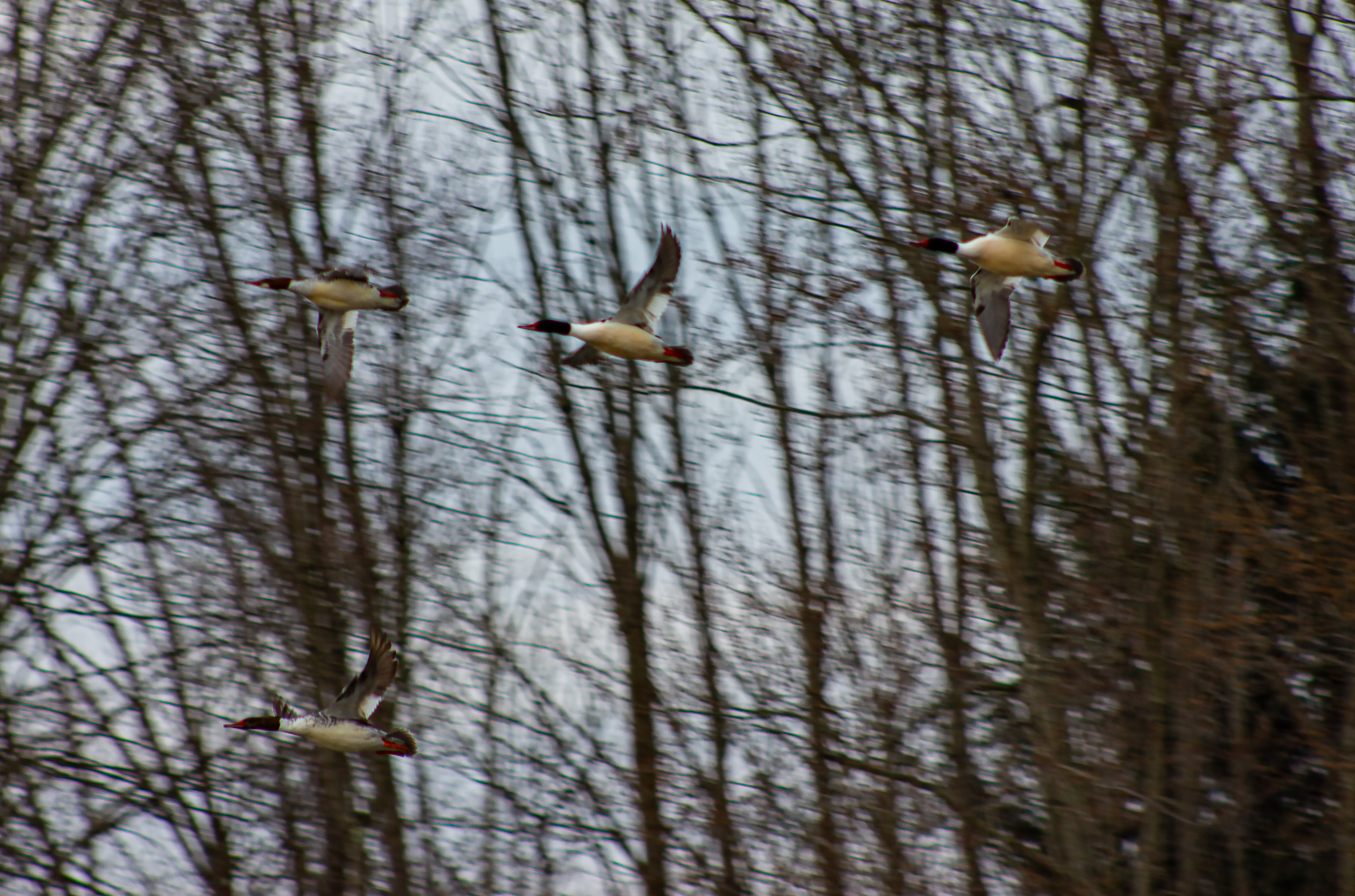 Migratory Patterns: Common Mergansers are migratory birds, moving from northern breeding grounds in summer to more southern areas during the winter. They tend to migrate in flocks, sometimes forming large, dense groups that make for dramatic sights in flight.