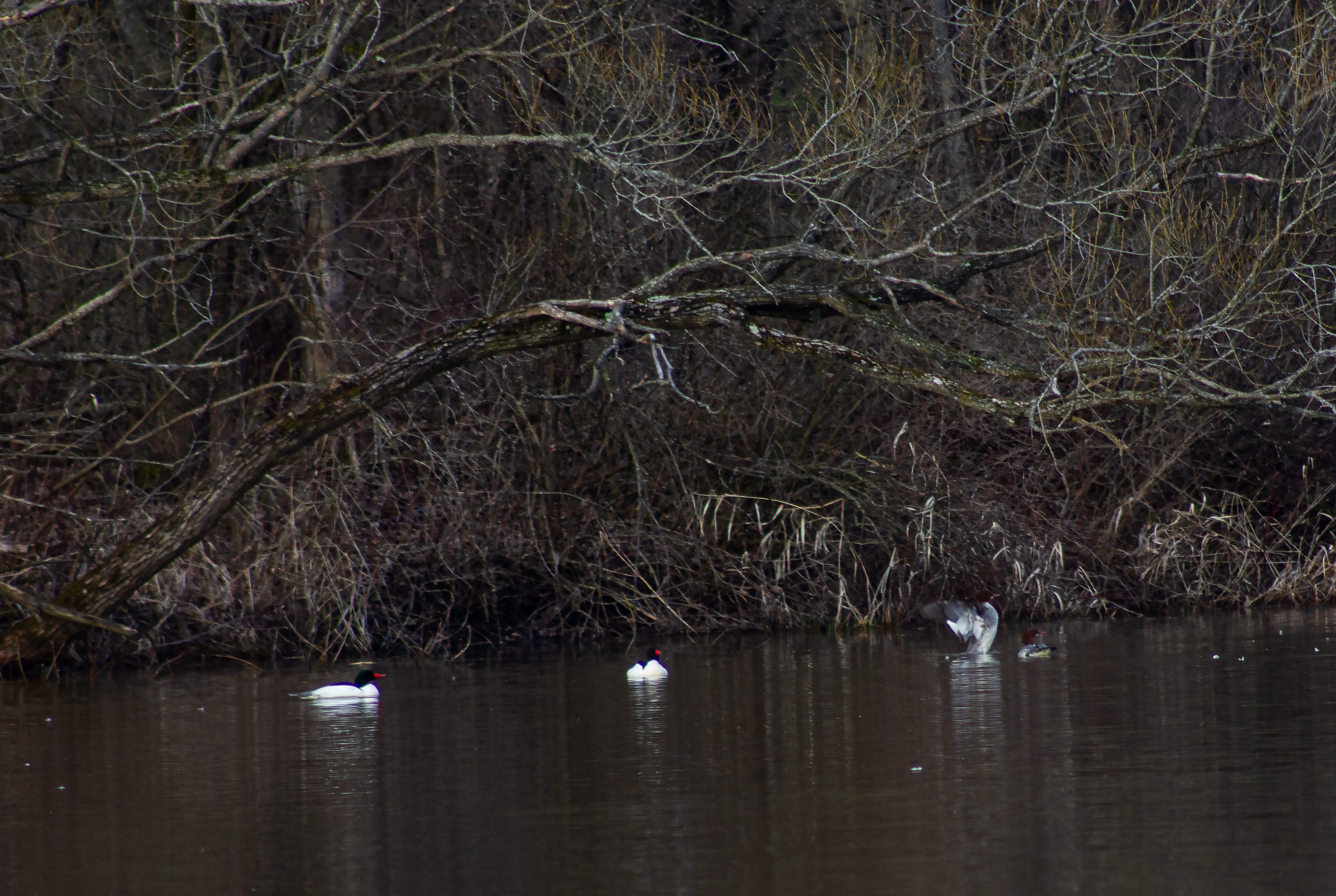 Feeding: Unlike many other ducks, Common Mergansers are diving ducks and are skilled swimmers. They dive to considerable depths in search of food and can remain submerged for up to 30 seconds.