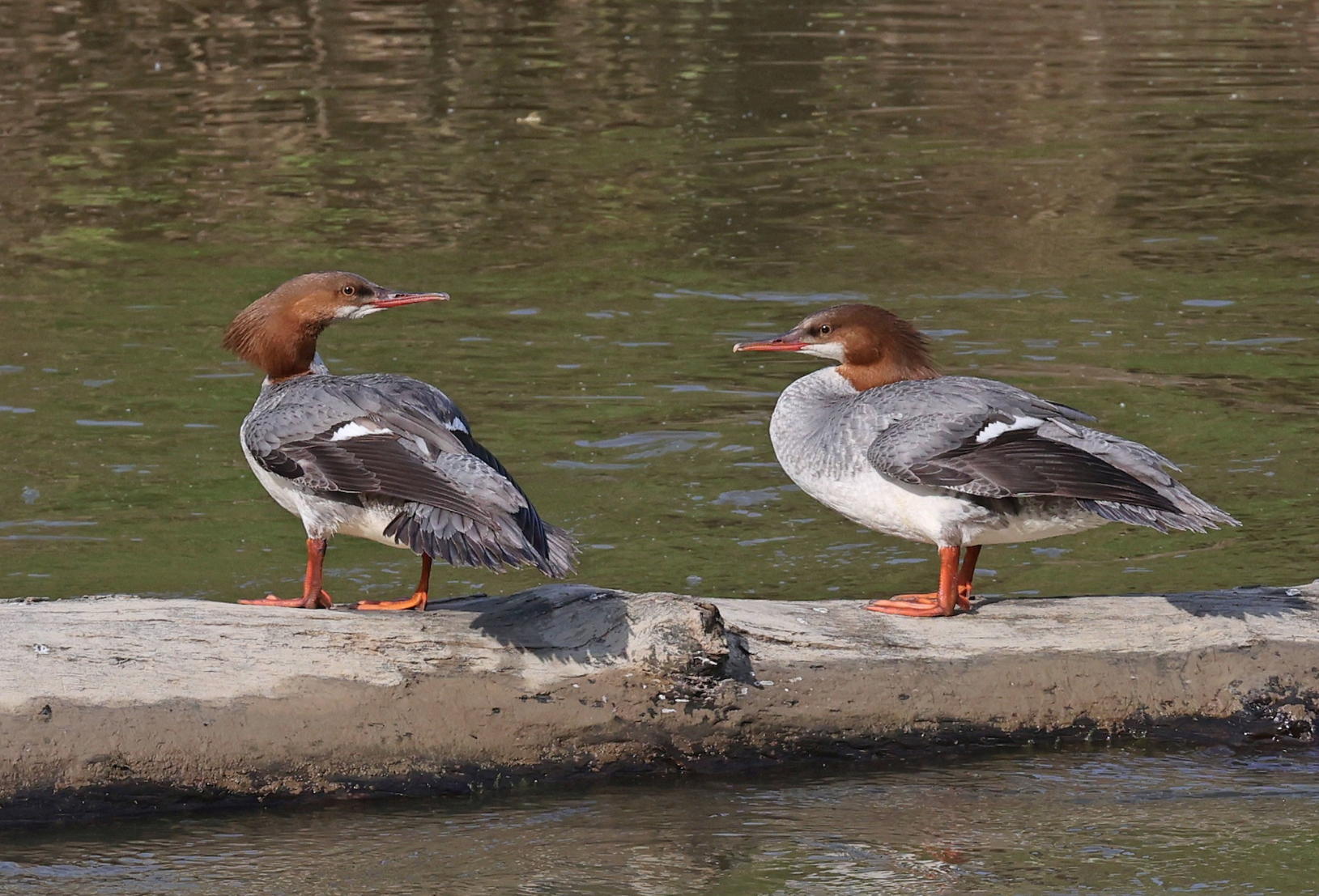 Size: Common Mergansers are relatively large birds, with males being slightly larger than females. Males typically measure around 27–30 inches (69–76 cm) in length, while females are a bit smaller, around 24–27 inches (61–69 cm).