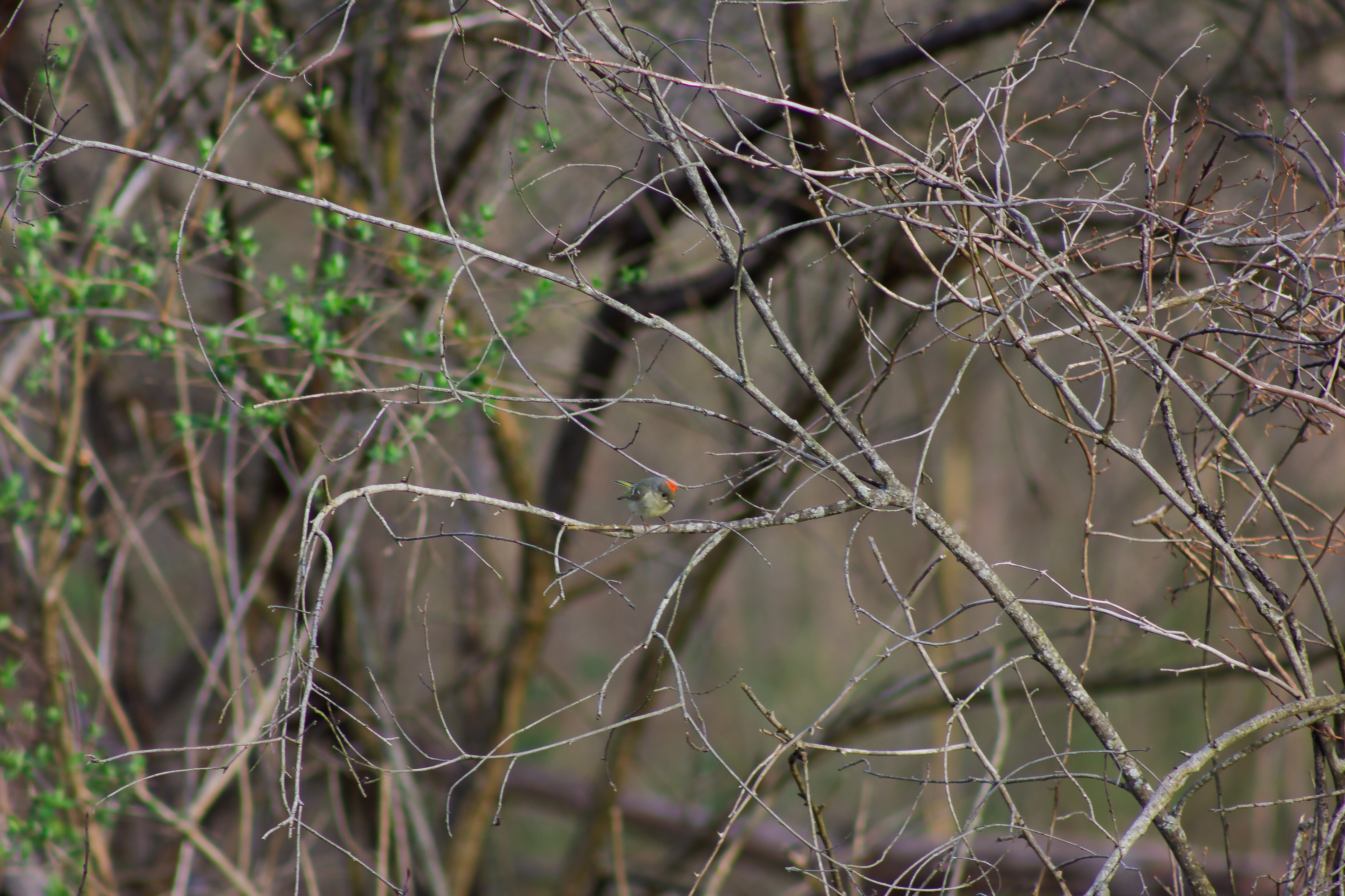 The ruby crown is rarely visible, but when it flares up, it’s usually during aggression, courtship, or when startled.