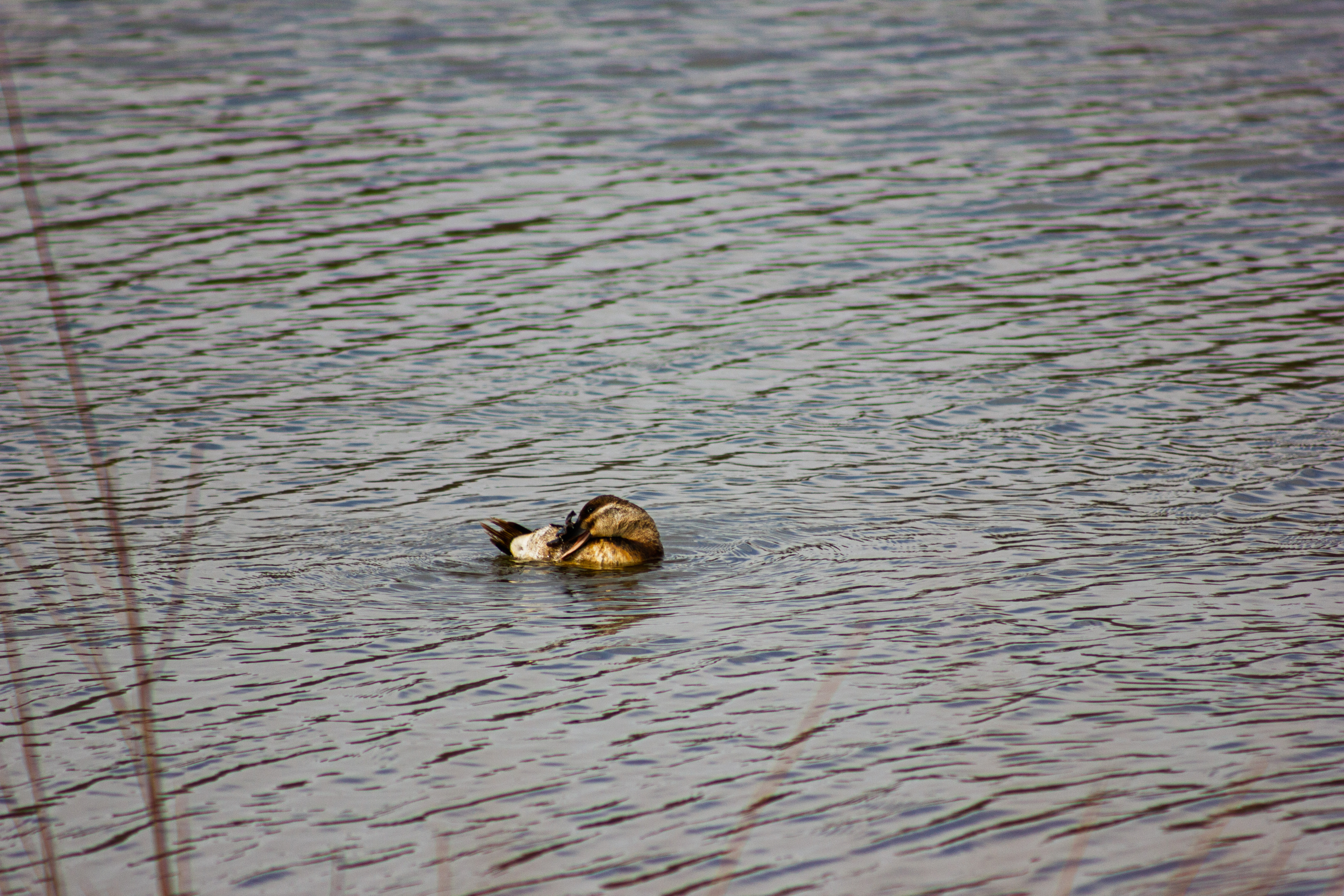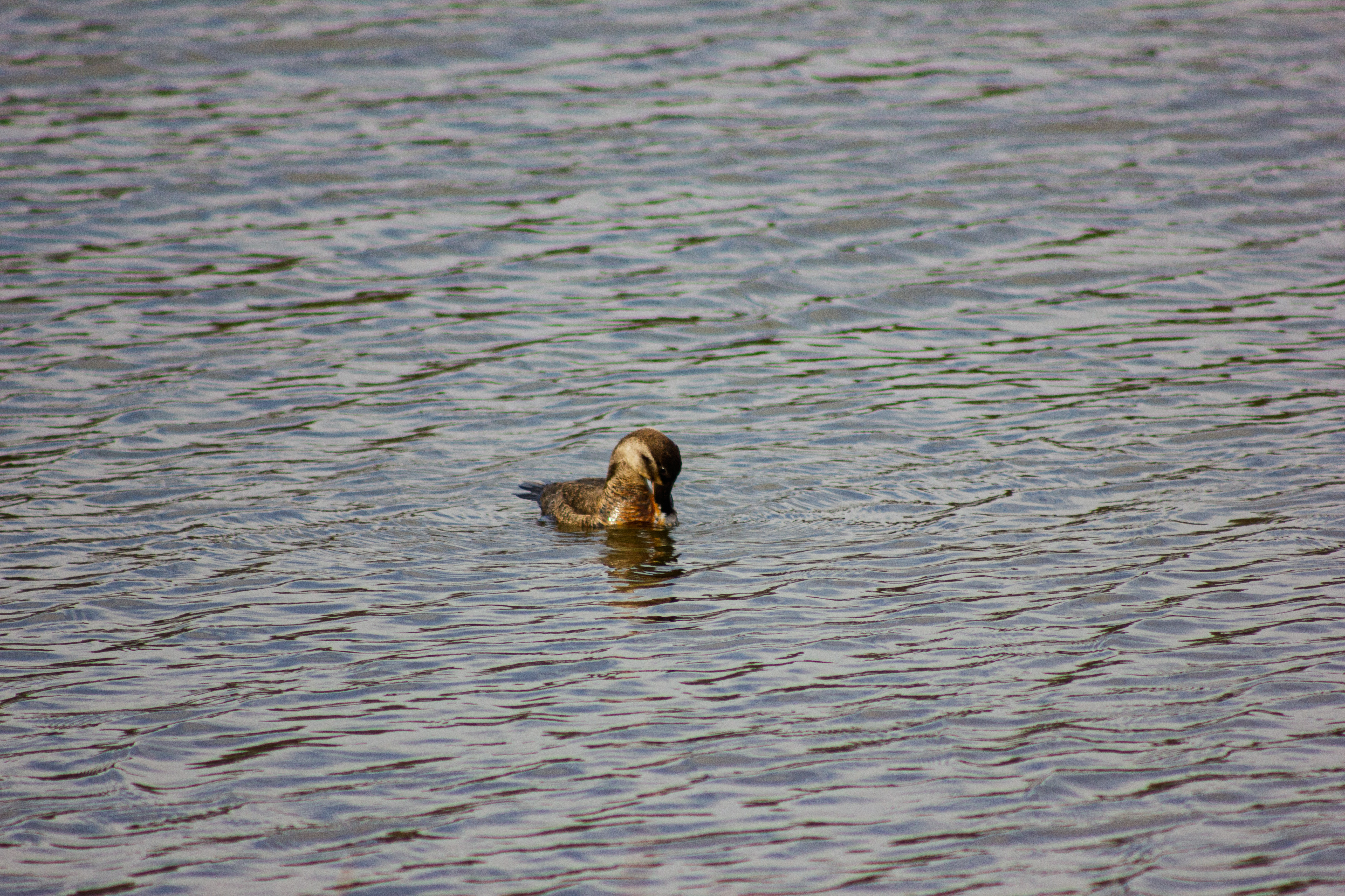 Feeding: Diet consists of aquatic invertebrates (like insect larvae, crustaceans, and mollusks), seeds, and plant material. Forages by diving, often staying submerged for extended periods.