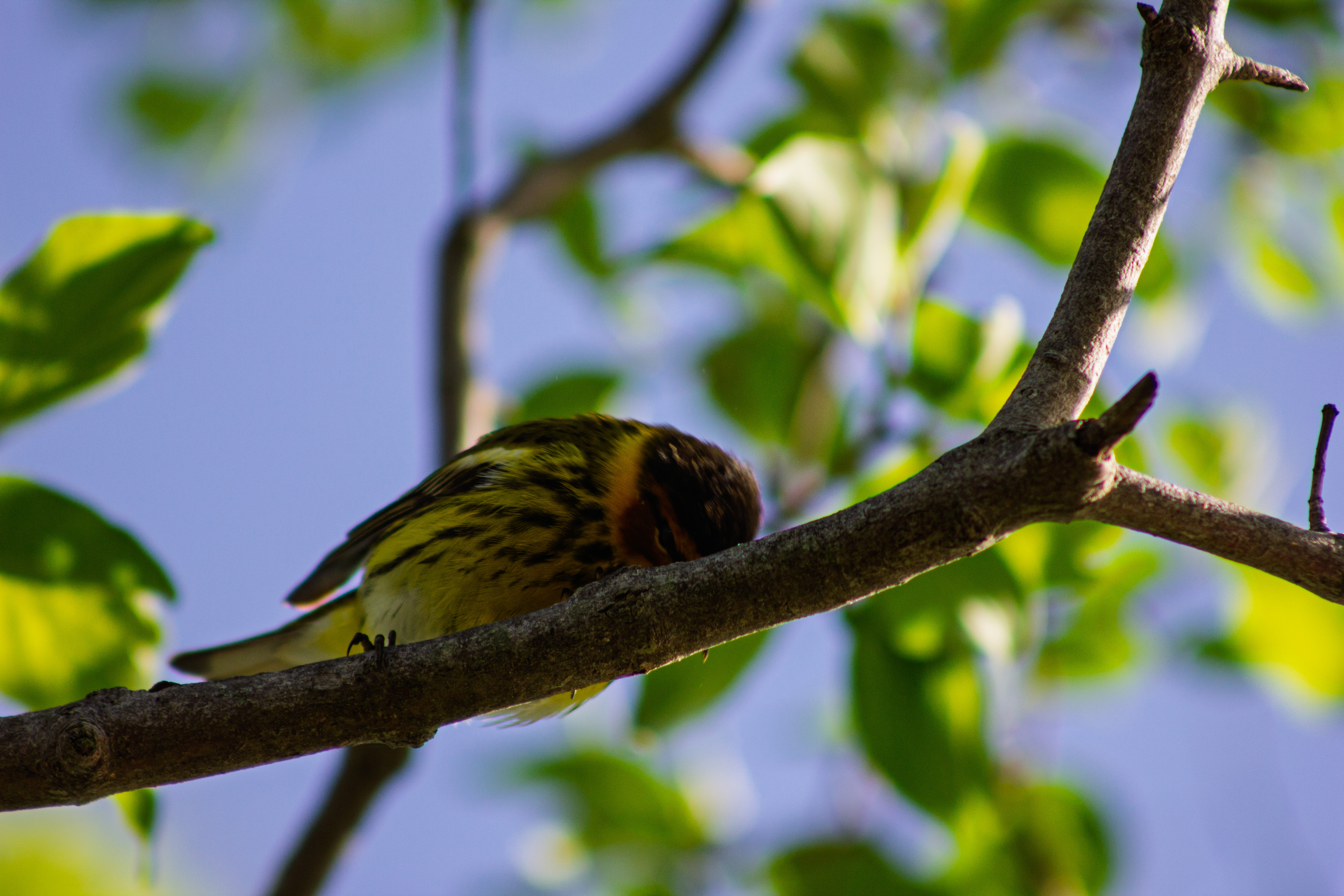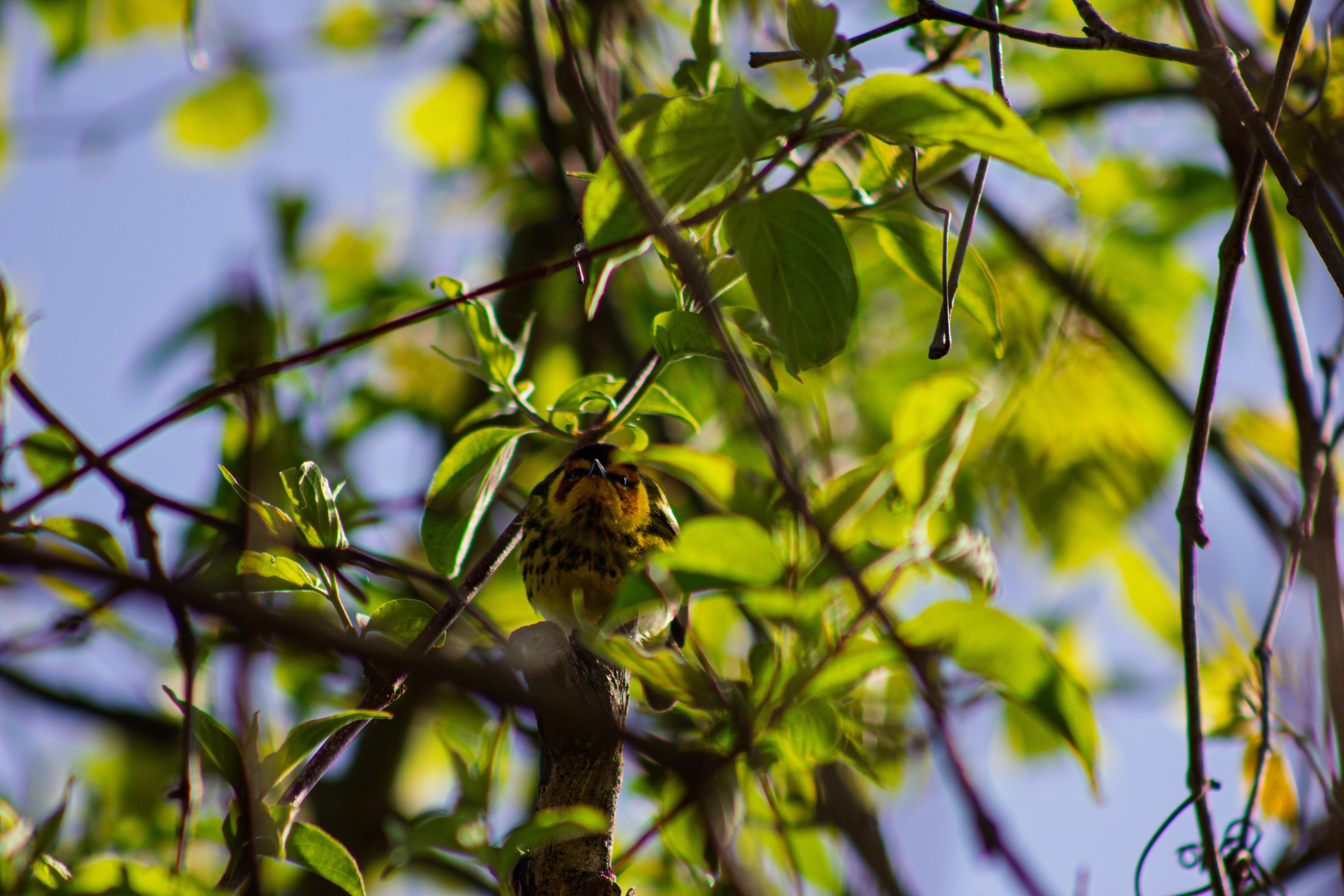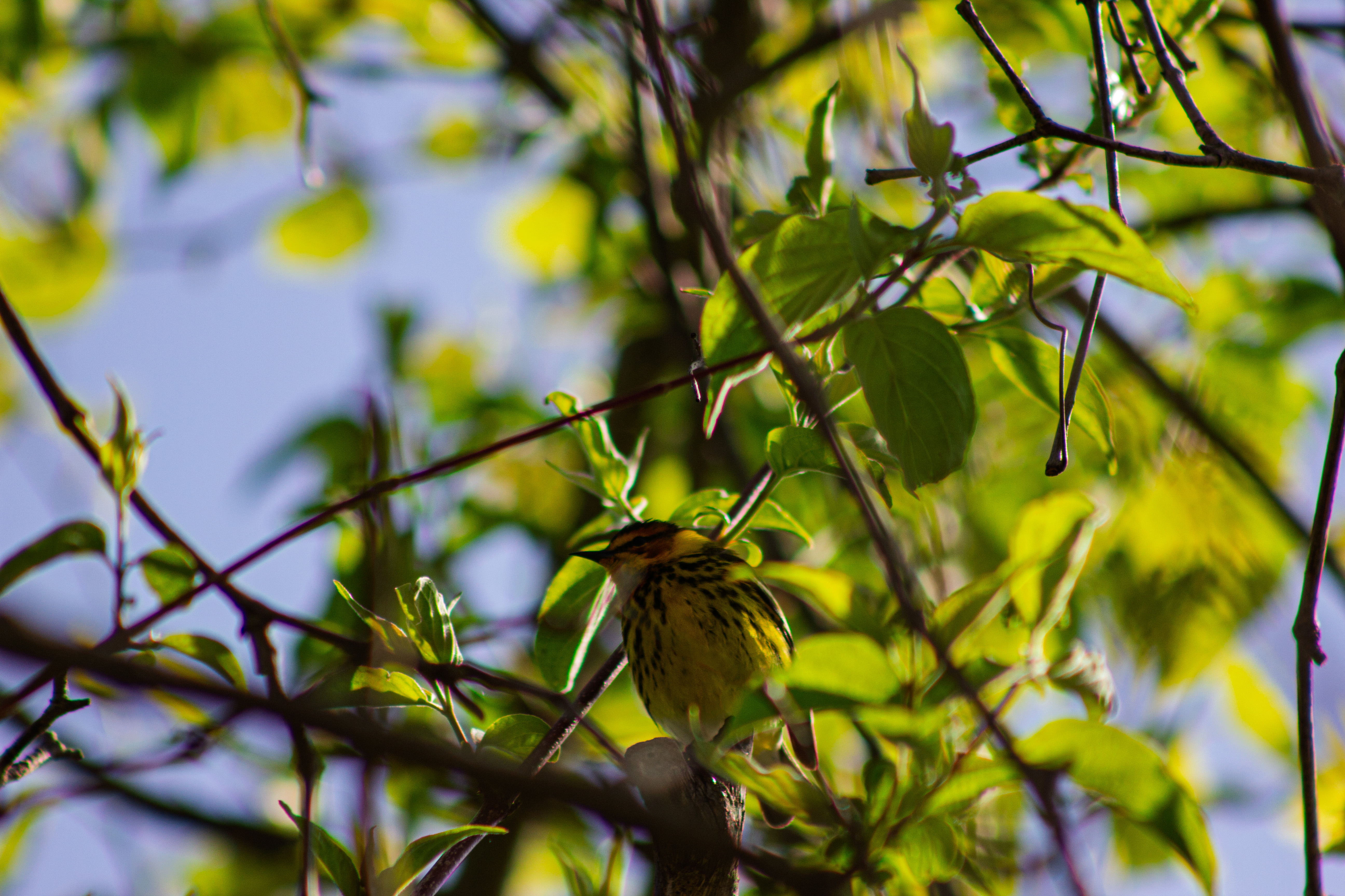 Cape May Warblers show population booms during spruce budworm outbreaks, a primary food source in breeding areas. They are one of the few warbler species with a specialized tongue for feeding on nectar. Despite being named after Cape May, New Jersey, the species was not seen there again for over 100 years after its first discovery.