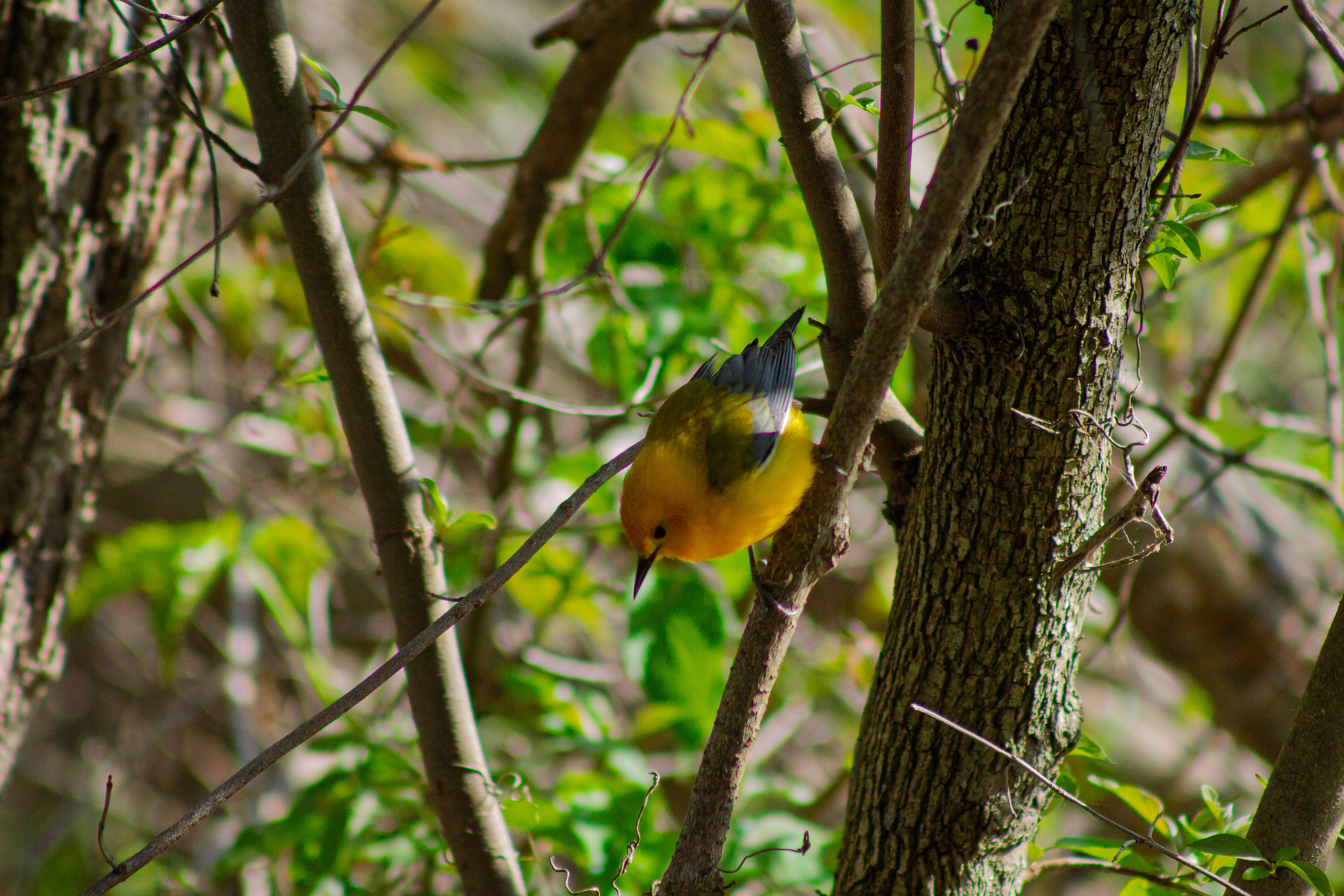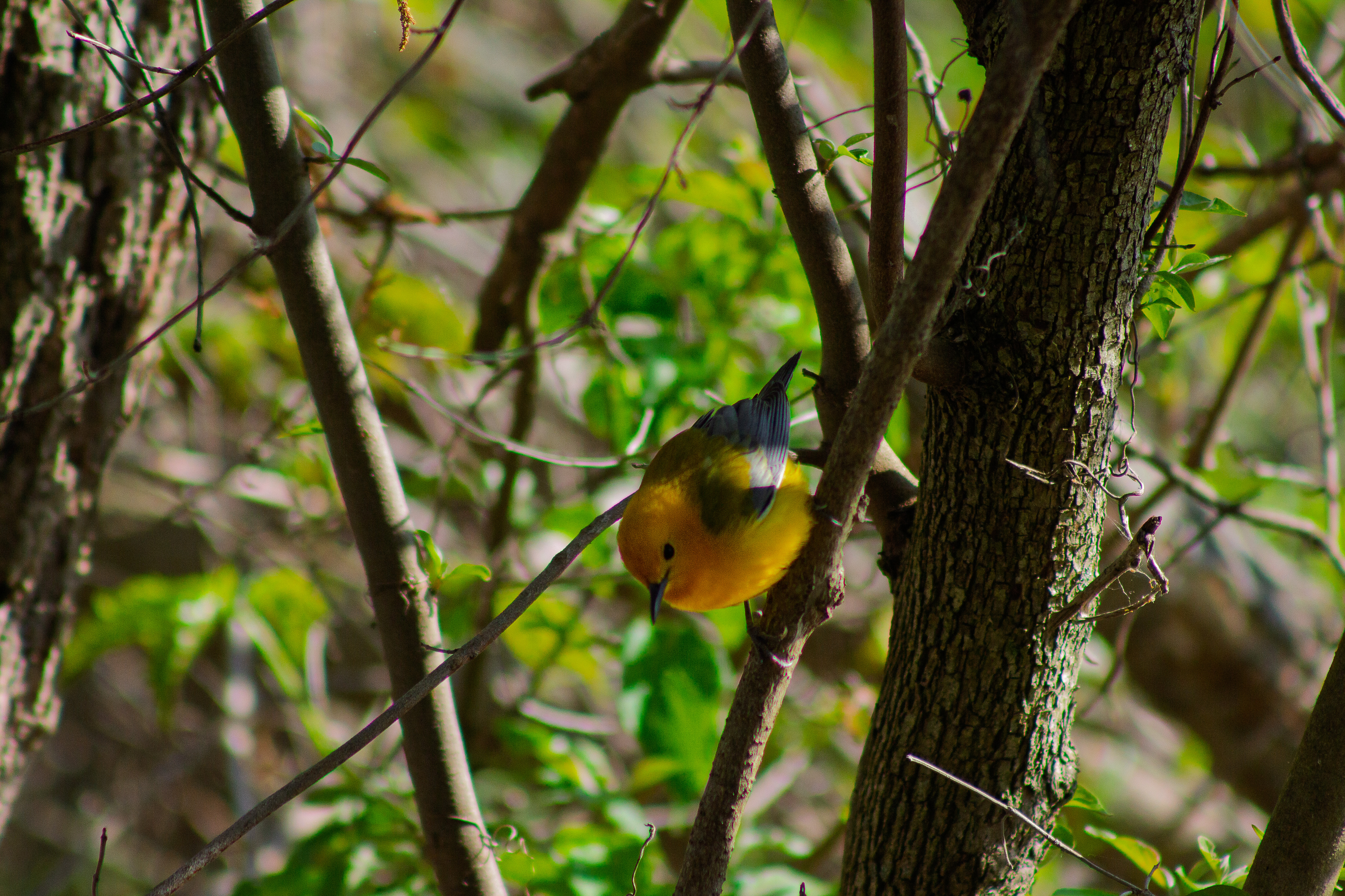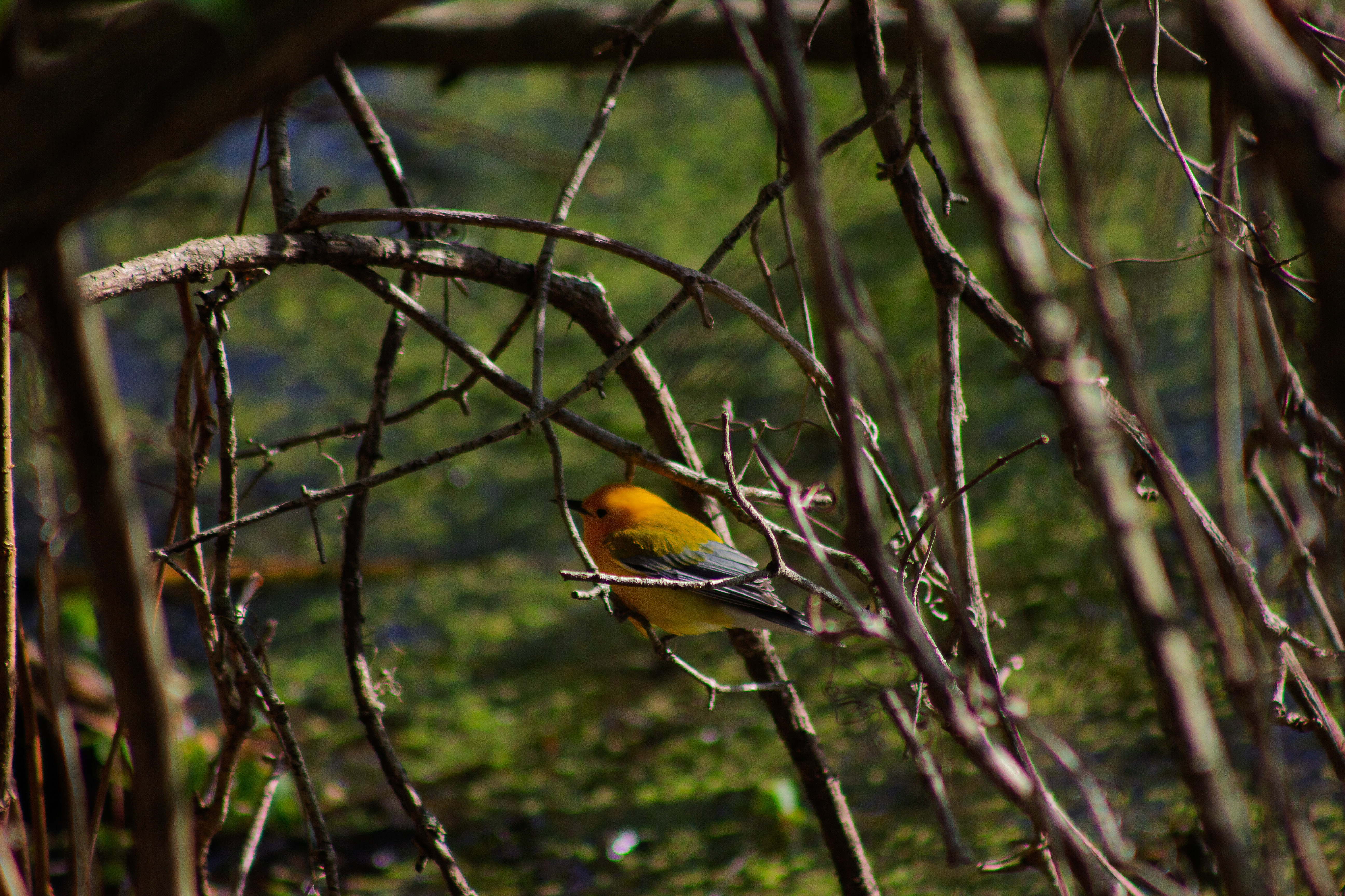Look For: A golden-yellow flash low in the foliage near water.