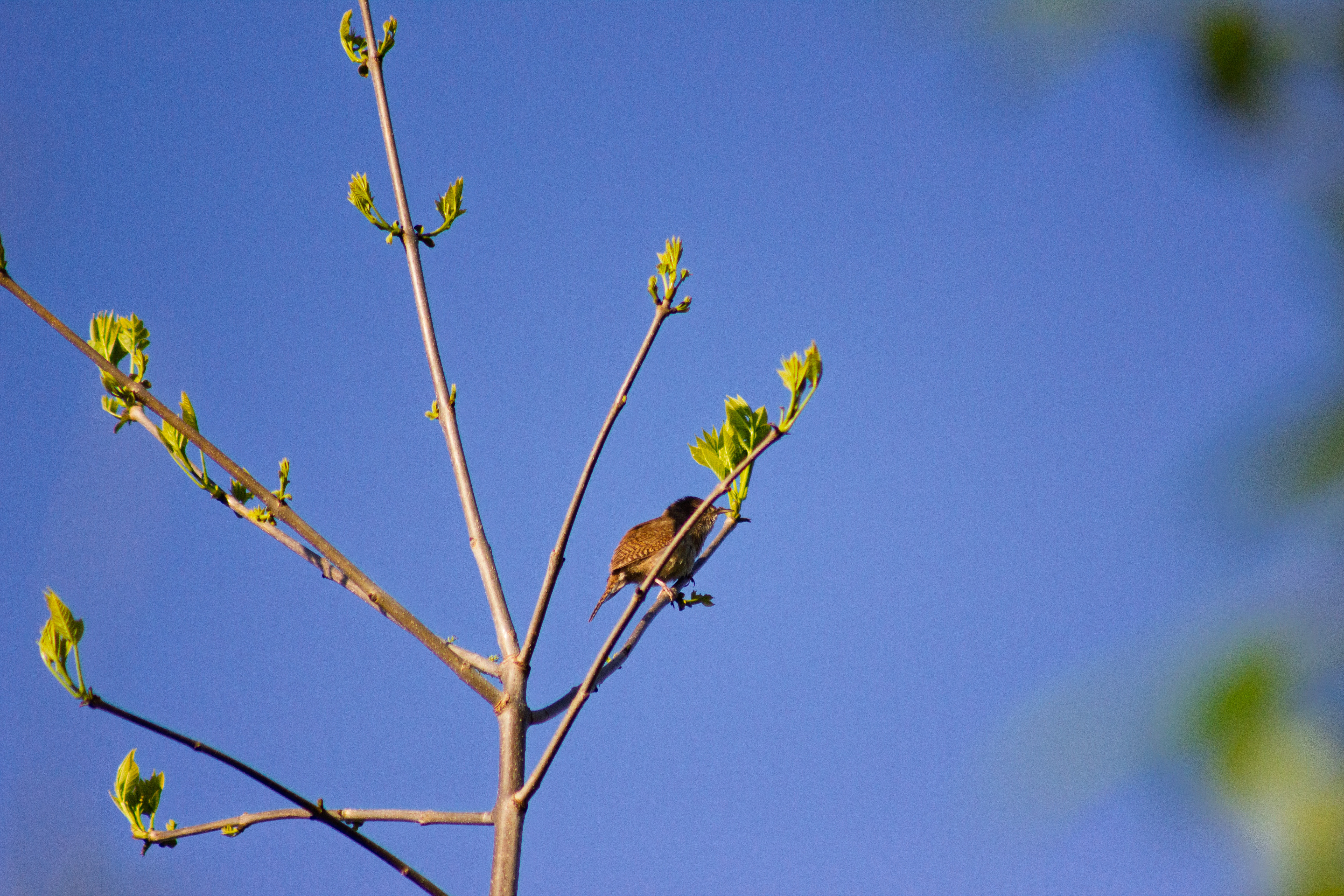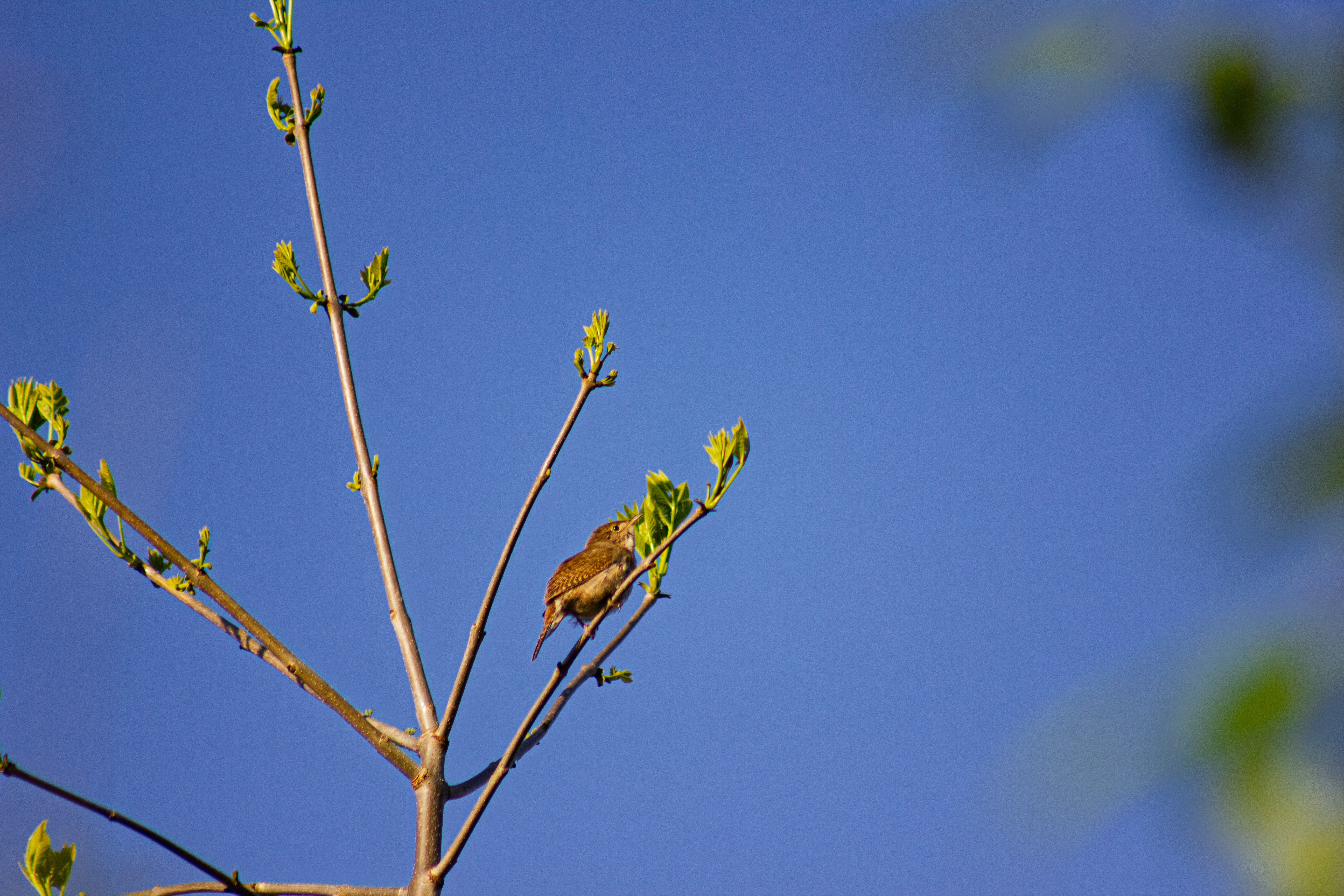 Song: A loud, bubbling, complex series of trills and rattles. Call: Harsh scolding churr or ticking sounds.
