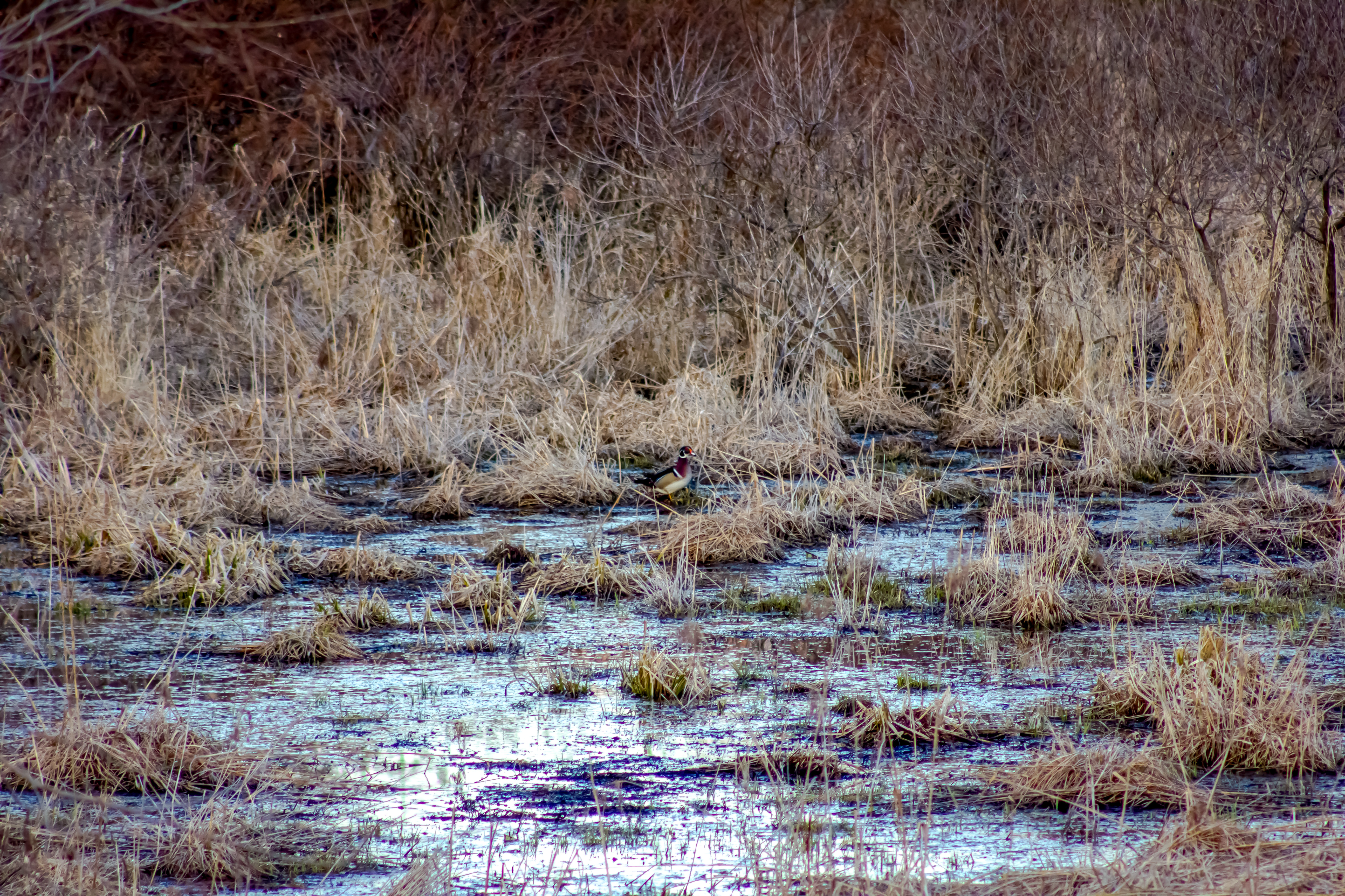 Preferred Habitat: Freshwater ponds, swamps, marshes, wooded creeks, and rivers. Requires trees with cavities or man-made nest boxes for breeding. Often found near forested wetlands and bottomland hardwoods