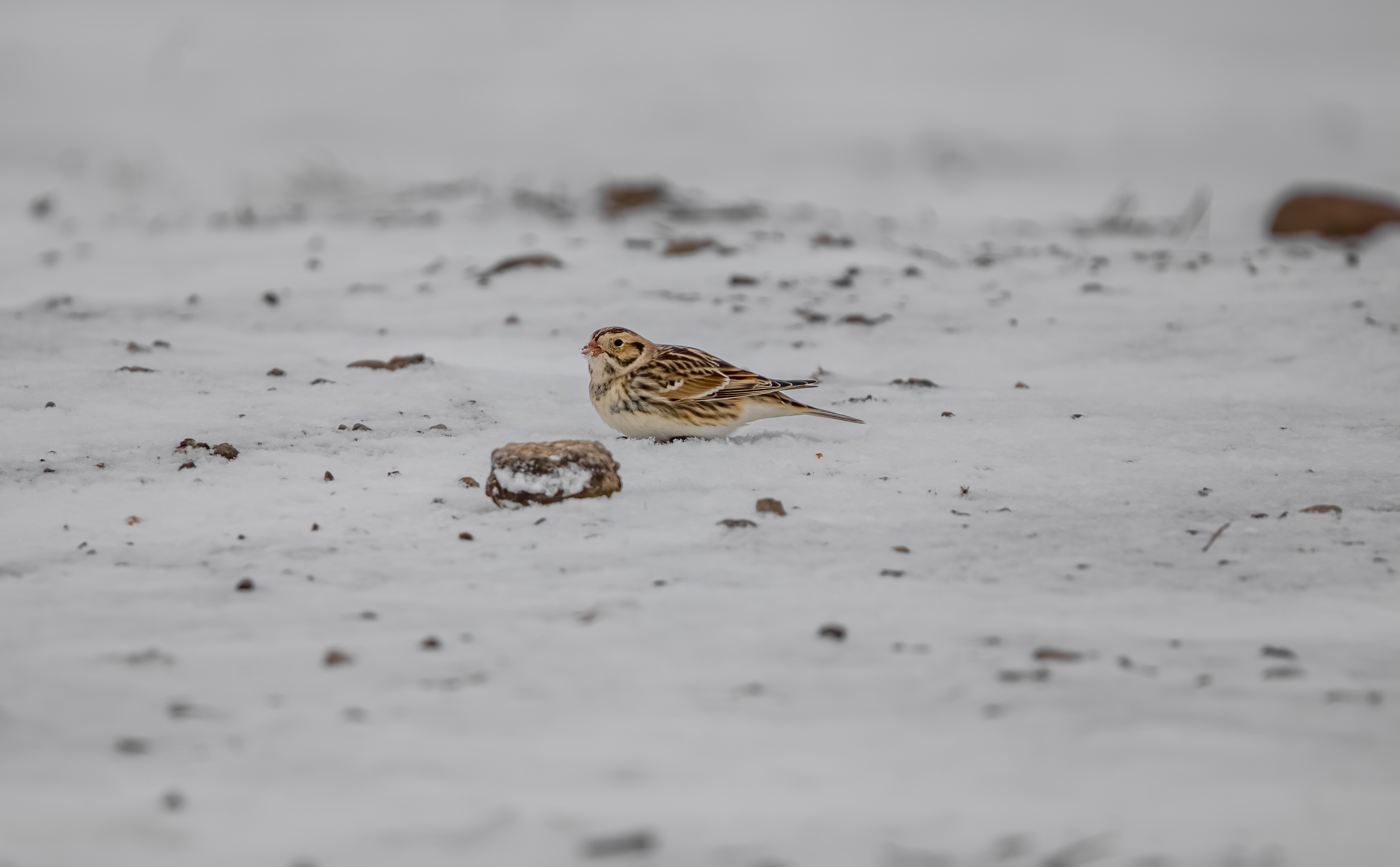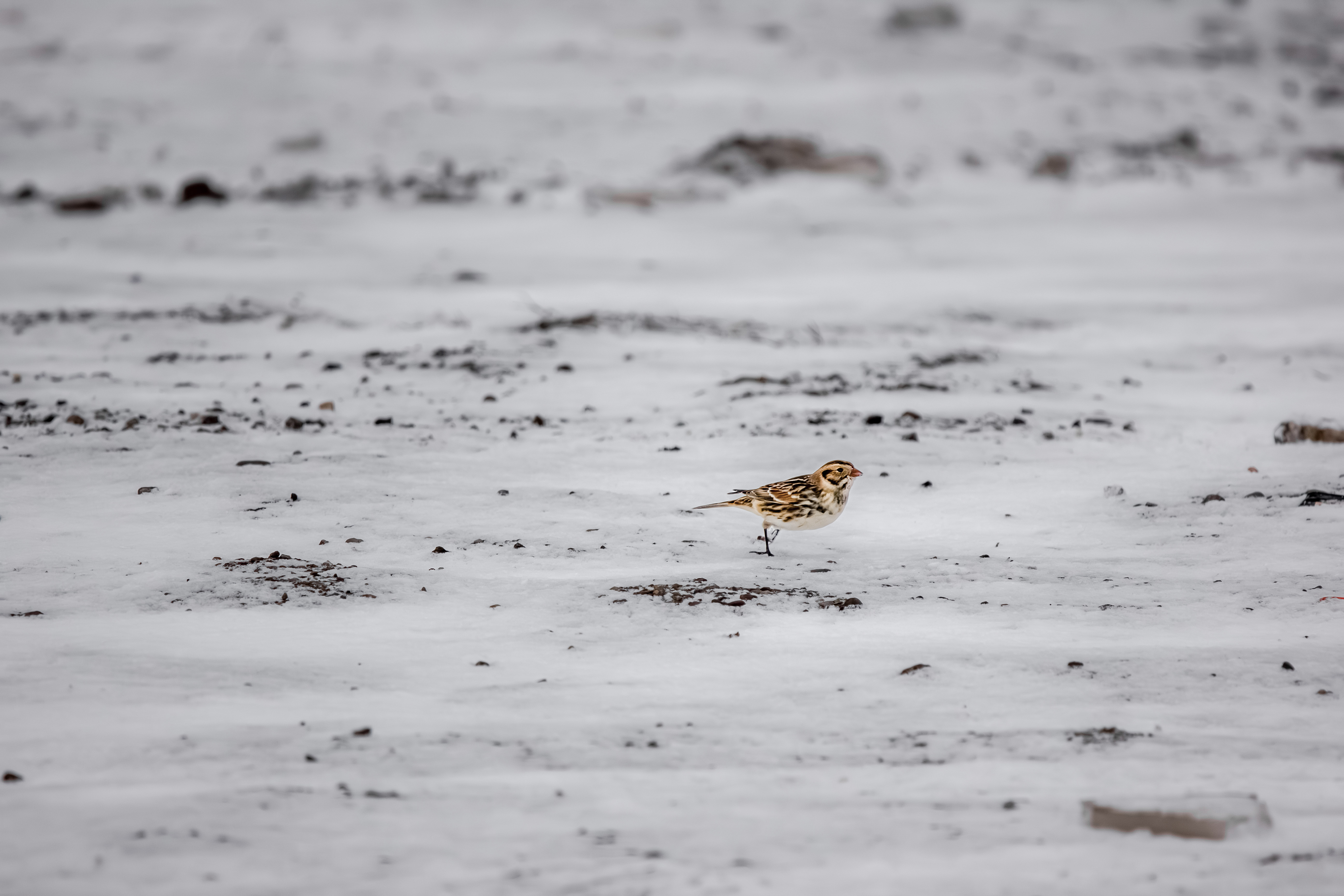 Lapland Longspurs are long-distance migrants, traveling up to 4,000 miles between breeding and wintering grounds. Their migration is closely tied to snow cover and food availability rather than strict calendar timing.