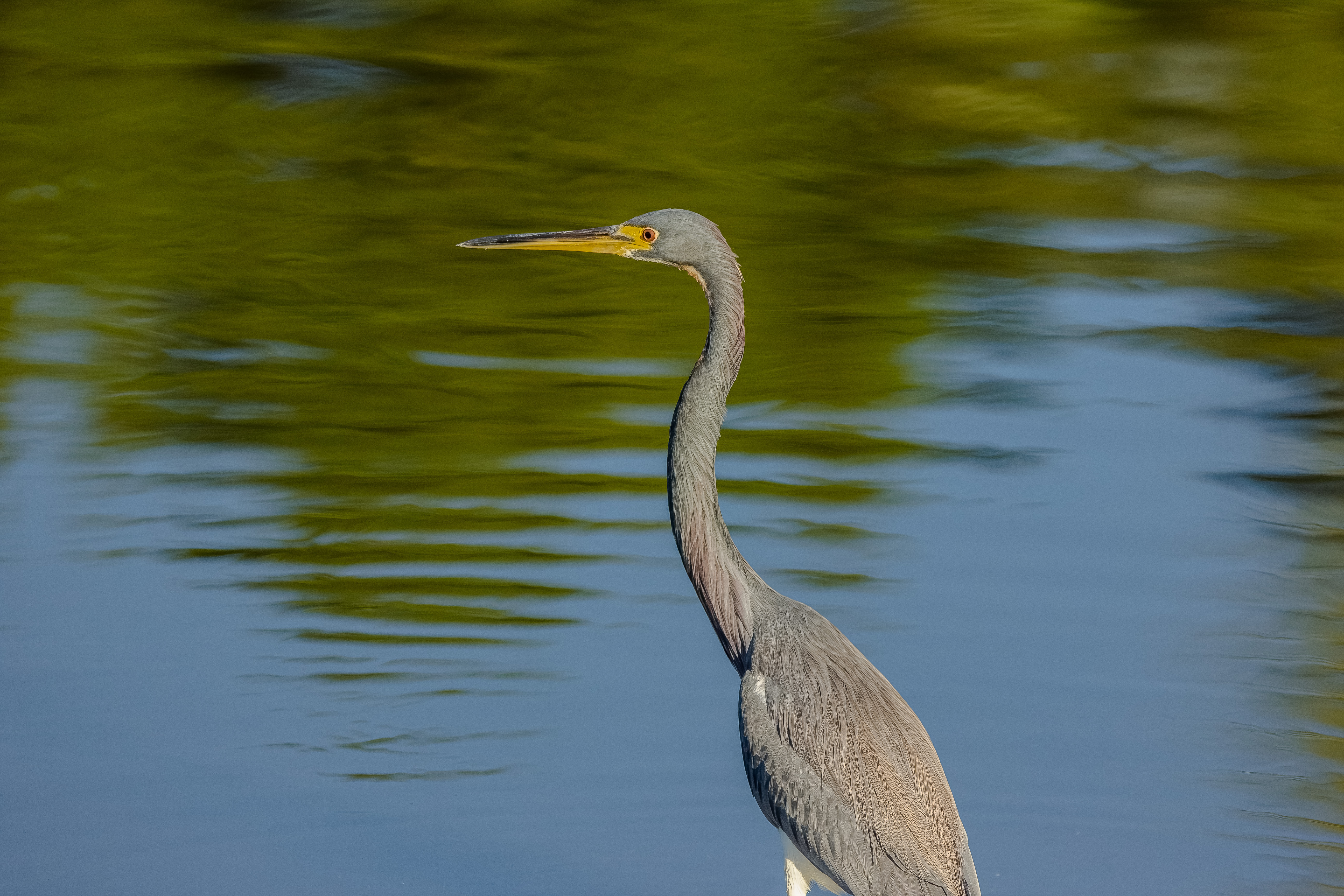 The Tricolored Heron is a slender, elegant wading bird native to the Americas, best known for its striking blue-gray, white, and rufous coloration and its energetic feeding behavior. Formerly known as the Louisiana Heron, this species is a member of the heron family, Ardeidae, and is commonly found in coastal wetlands, marshes, estuaries, and mangroves.