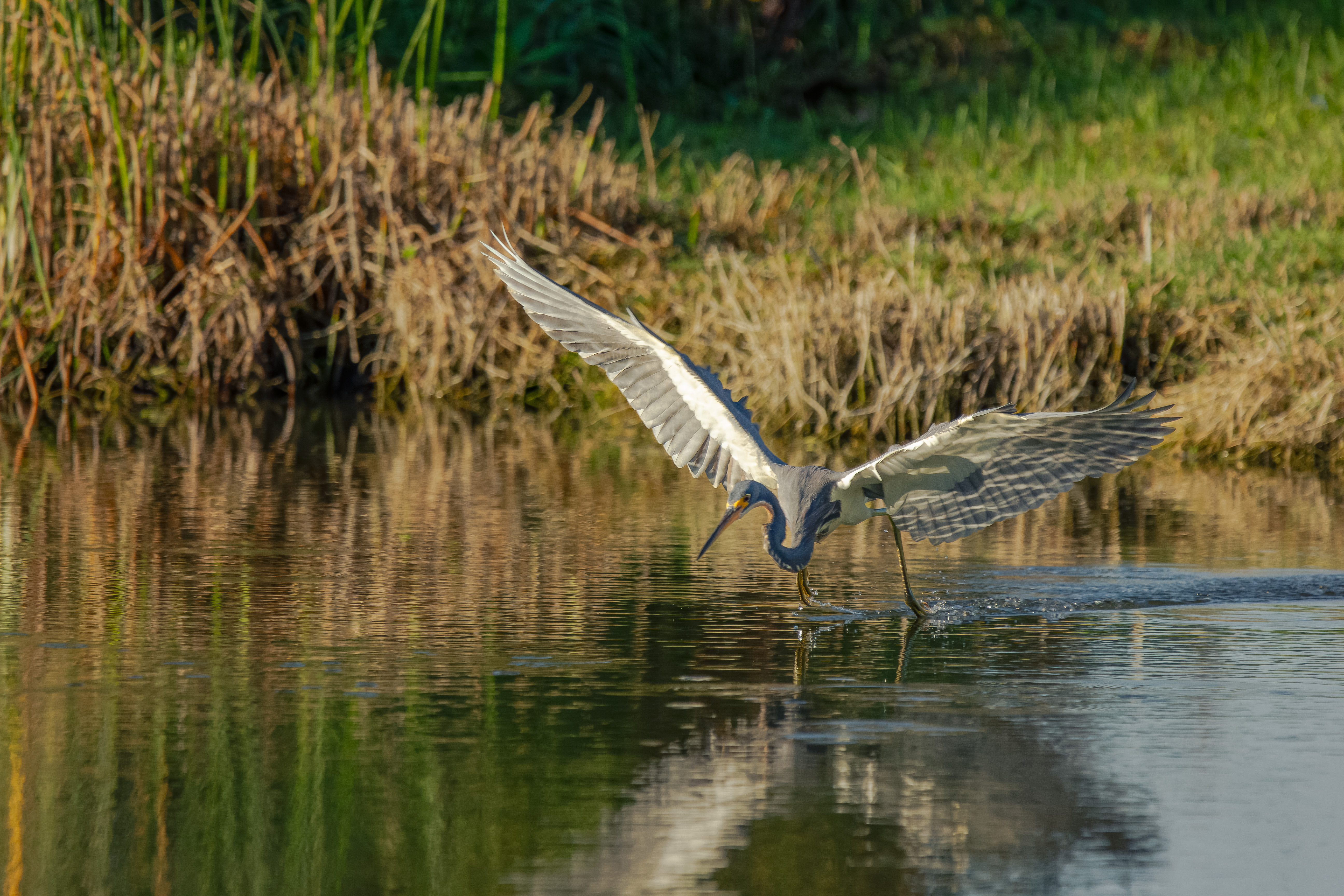 Formerly called the Louisiana Heron. One of the most active hunters among North American herons. Often feeds with wings slightly spread to reduce glare. Despite bold colors, can be surprisingly hard to spot in marsh vegetation.