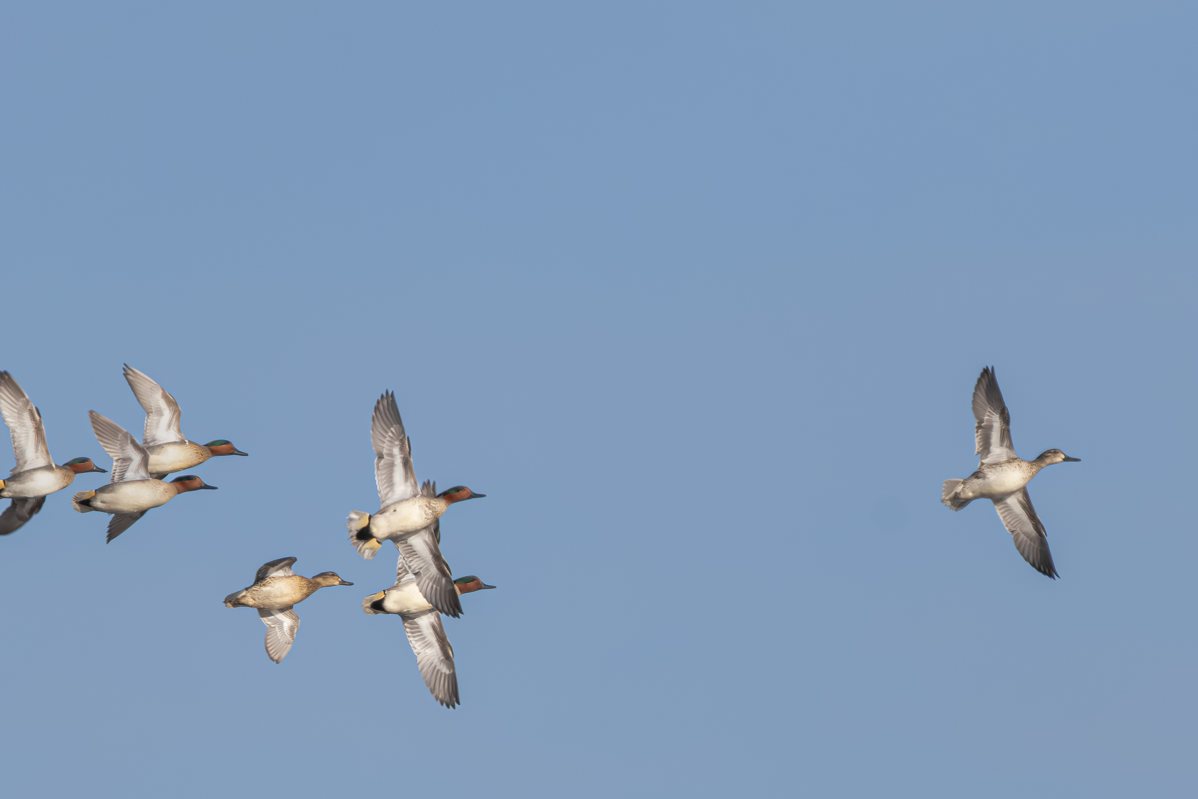 Their flight style is often compared to shorebirds due to their speed and coordination.
