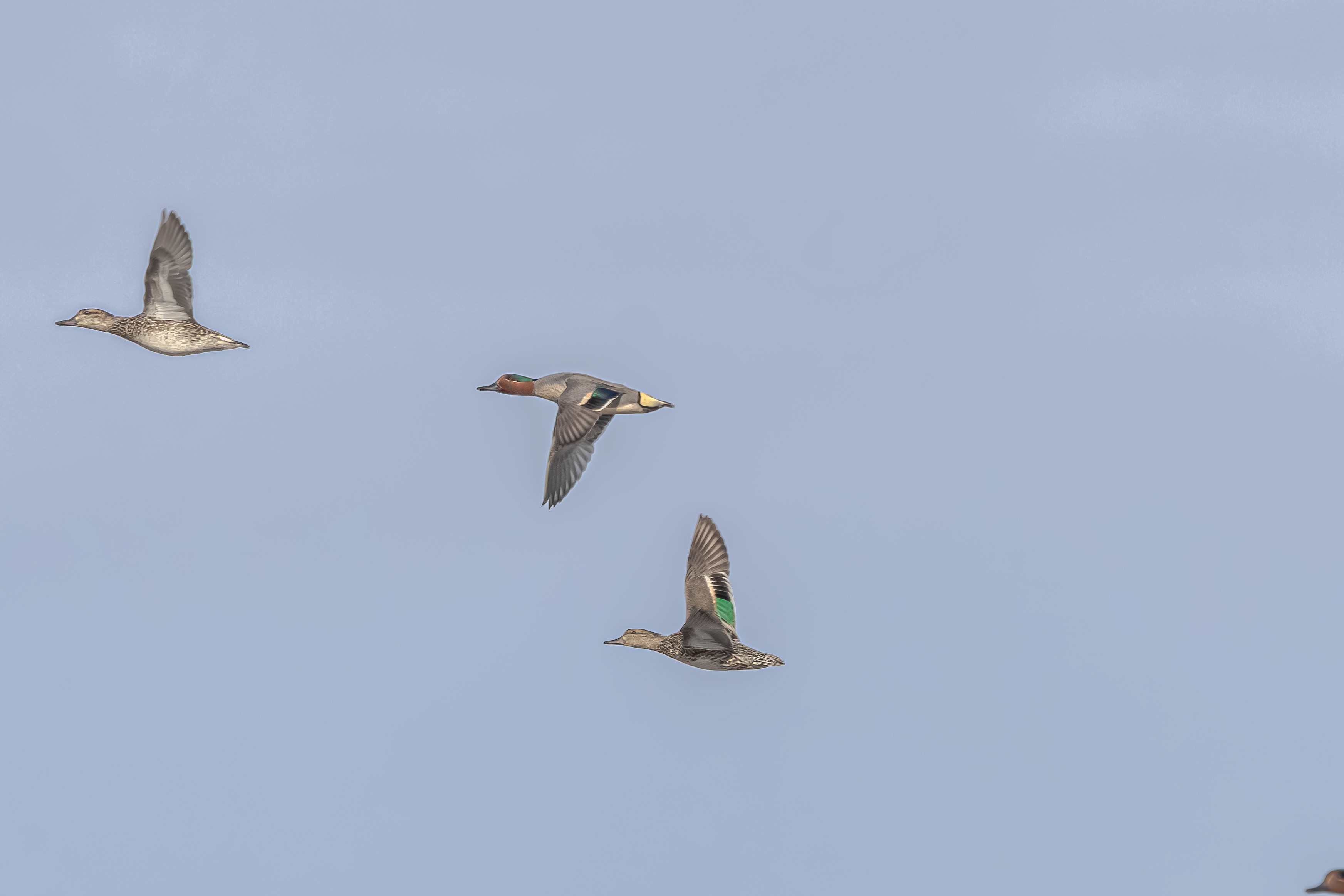 Green-winged Teal are dabbling ducks, meaning they feed by tipping forward in shallow water rather than diving.
